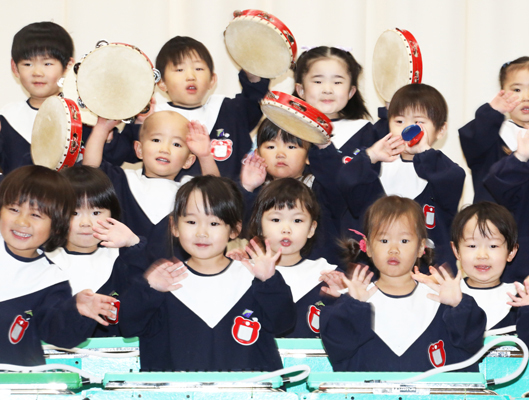 園の特徴と致しまして「立腰教育」「知能遊び」「漢字教育」「英語教育」「体育指導」「剣道」「音楽指導」 を行っており、体力作りとやる気作りを柱に、感性と思いやりを大切に育んでおります。